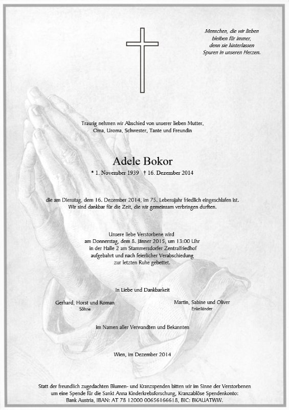 geboren am 1. November 1939 gestorben am 16. Dezember 2014