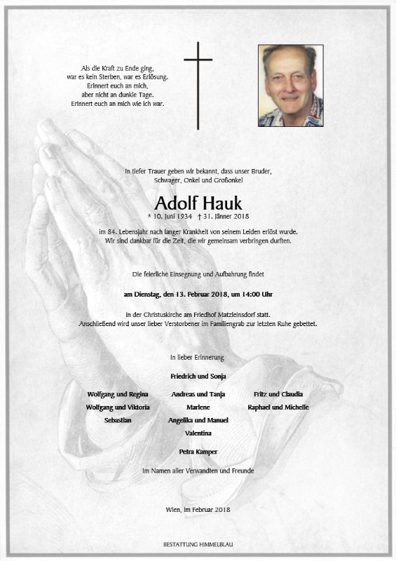 geboren am 10. Juni 1934 gestorben am 31. Januar 2018 in Wien