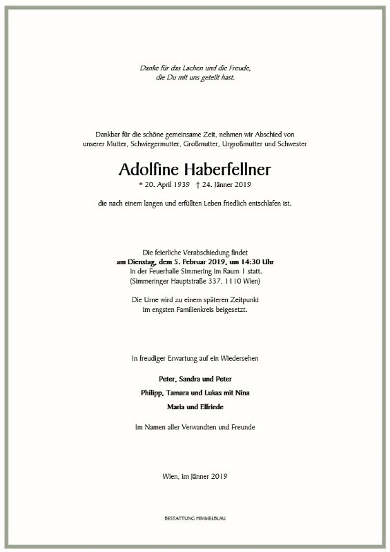 geboren am 20. April 1939 gestorben am 24. Januar 2019 in Wien