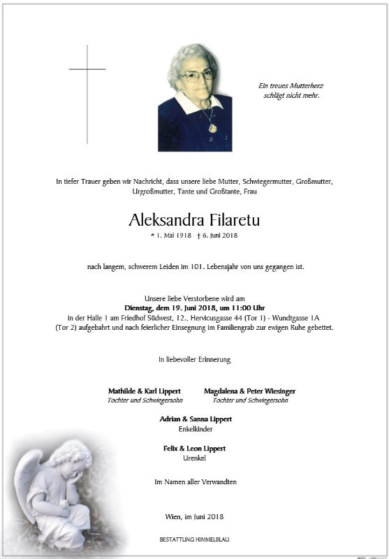 geboren am 1. Mai 1918 gestorben am 6. Juni 2018 in Wien