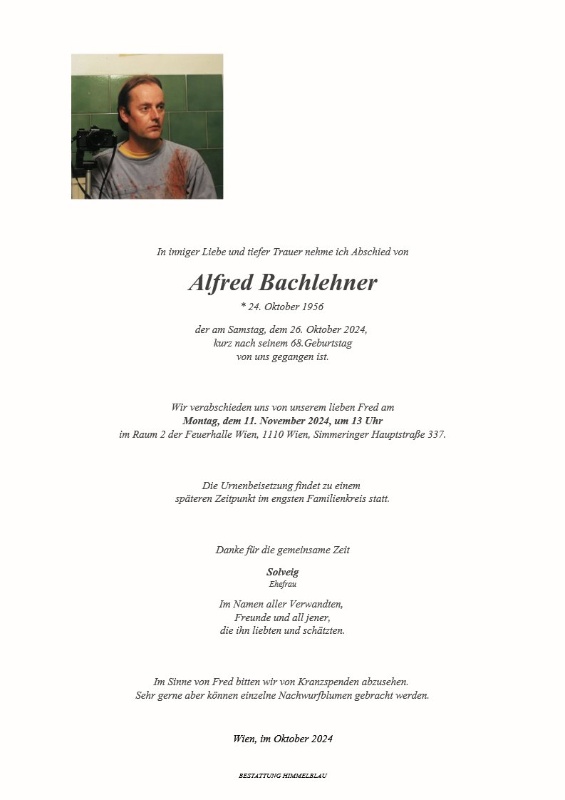 geboren am 24. Oktober 1956 gestorben am 26. Oktober 2024 in Wien