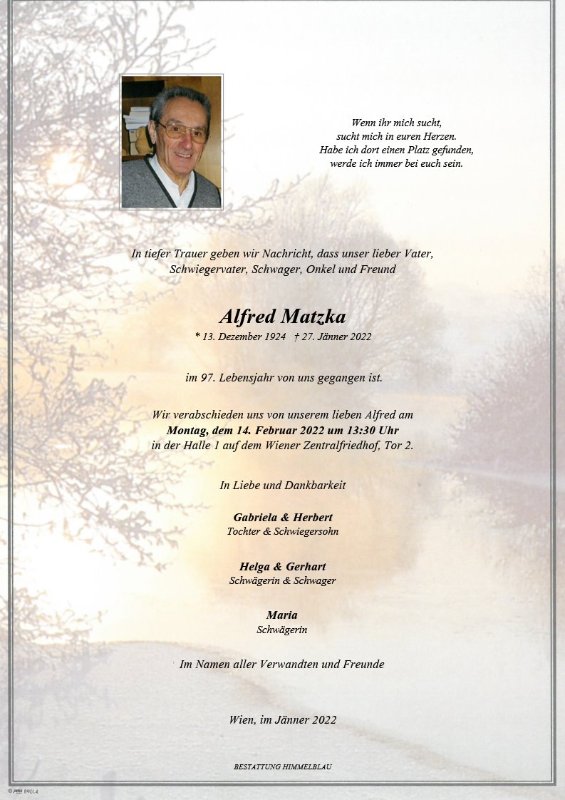 geboren am 13. Dezember 1924 in Eisgrub gestorben am 27. Januar 2022 in Wien