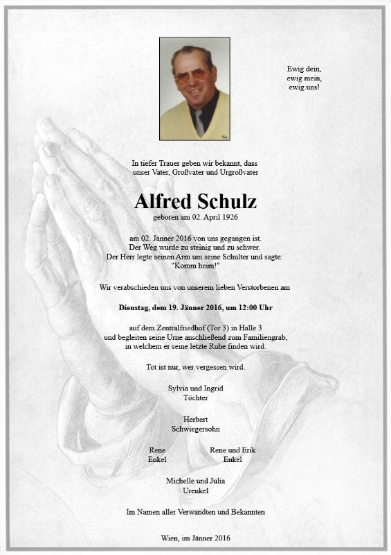 geboren am 2. April 1926 gestorben am 2. Januar 2016