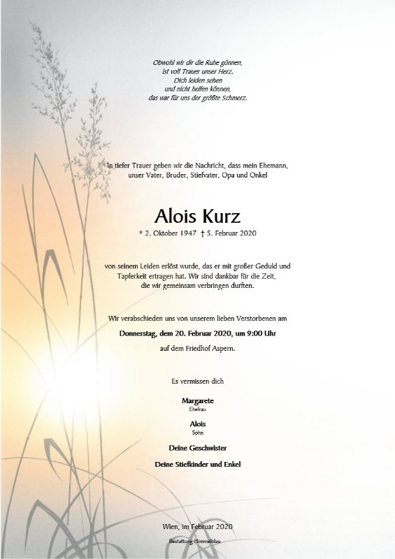 geboren am 2. Oktober 1947 gestorben am 5. Februar 2020 in Wien