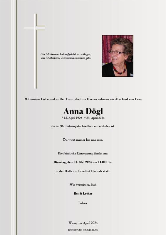 geboren am 13. April 1929 gestorben am 29. April 2024 in Wien