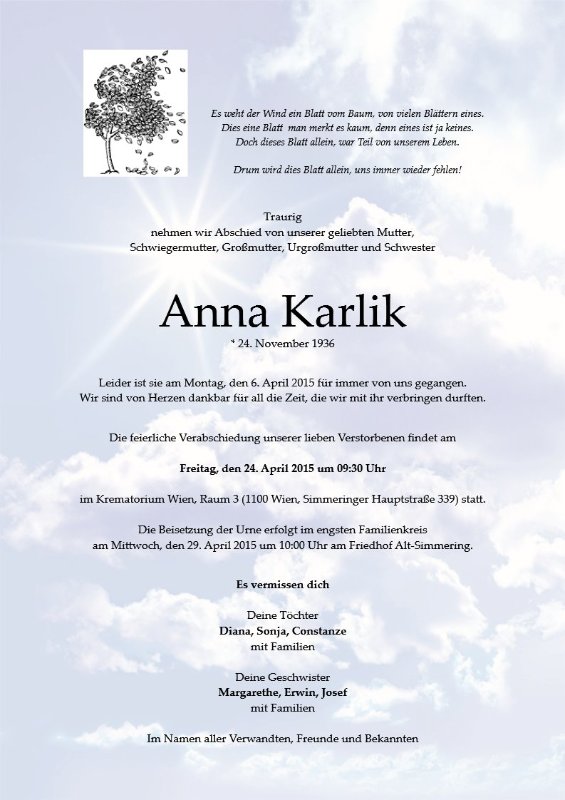 geboren am 24. November 1936 in Wien gestorben am 6. April 2015 in Wien