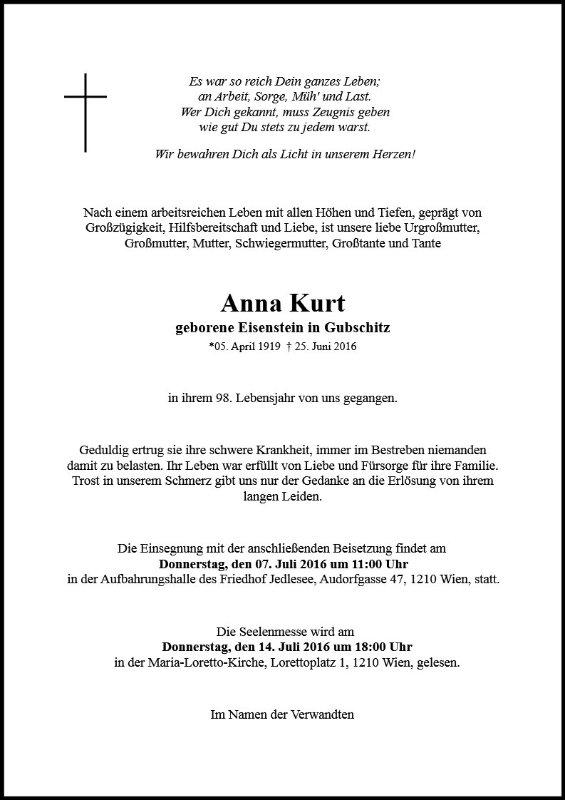 geboren am 5. April 1919 gestorben am 25. Juni 2016