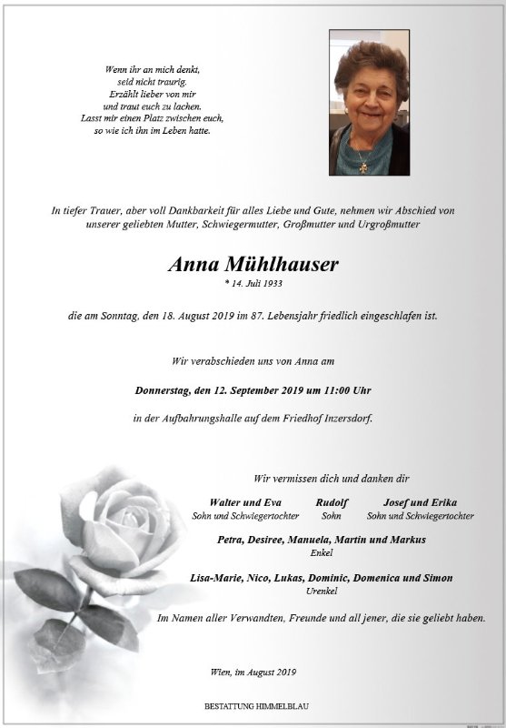 geboren am 14. Juli 1933 gestorben am 18. August 2019 in Wien