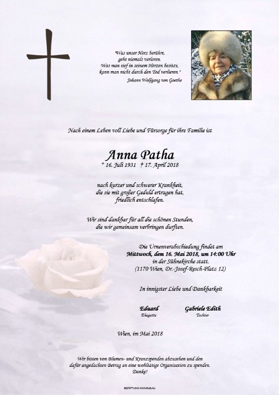 Sehen Sie hier die Termine der Abschieds- und Trauerfeierlichkeiten.