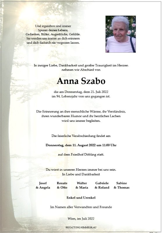 geboren am 17. Oktober 1928 gestorben am 21. Juli 2022 in Wien