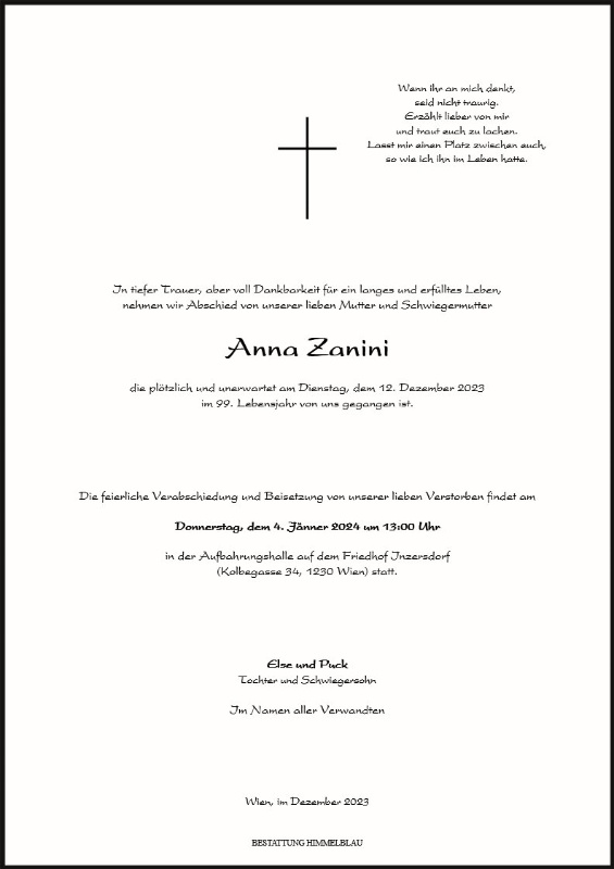 geboren am 8. April 1925 gestorben am 12. Dezember 2023 in Wien