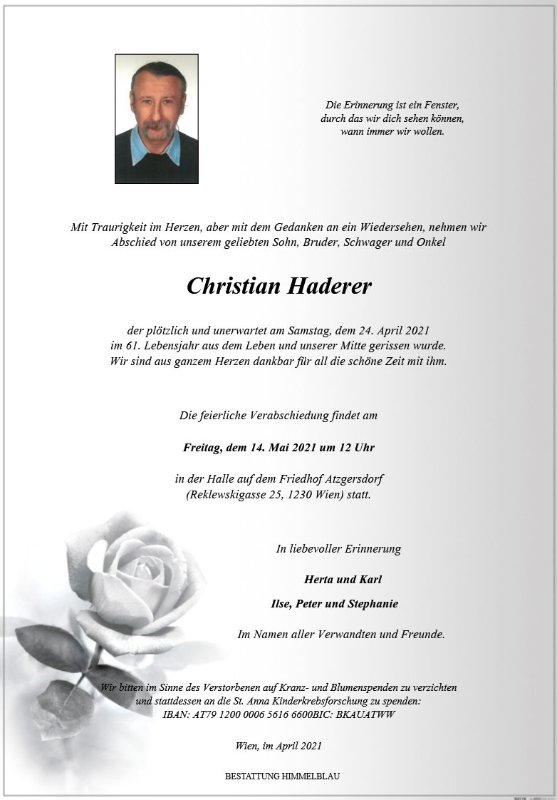 geboren am 4. Juli 1960 in Wien gestorben am 24. April 2021 in Wien