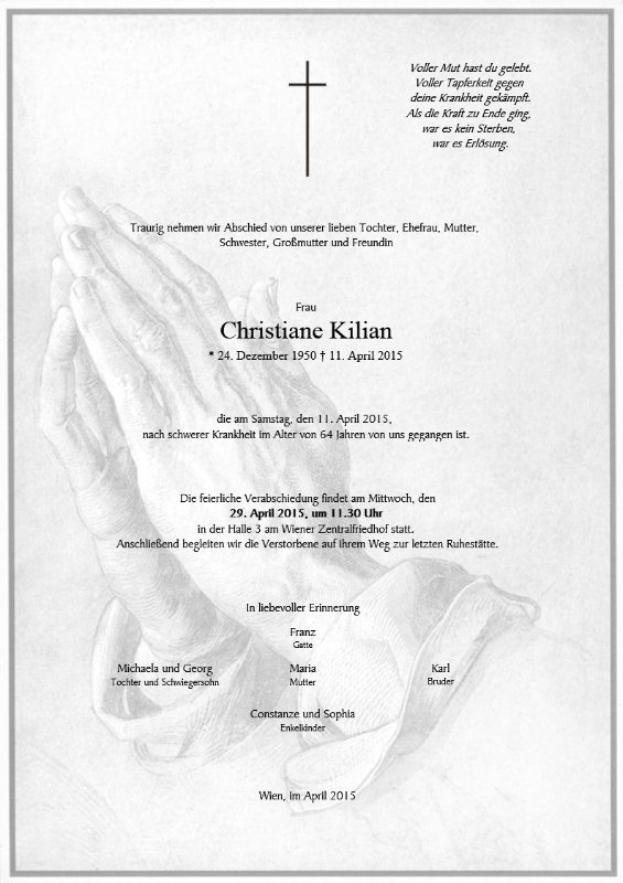 geboren am 24. Dezember 1950 gestorben am 11. April 2015