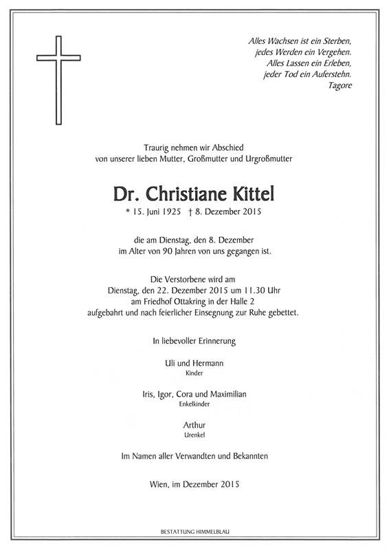 Mein aufrichtiges Beileid allen Angehörigen.Schön, dass Christiane ihr Urenkerl noch kennenlernen konnte!Ich behalte sie in bester Erinnerung.