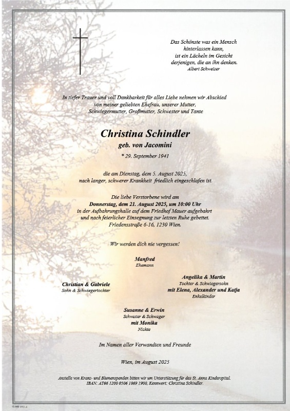 geboren am 29. September 1941 gestorben am 5. August 2025 in Wien