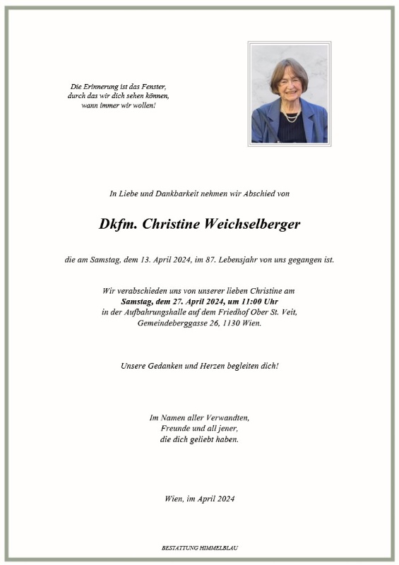 Der Weg des Lebens ist begrenzt. Die Erinnerung jedoch unendlich.Aufrichtige Anteilnahme Franz und Erni Weichselberger, Andorf
