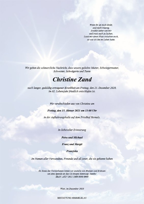 geboren am 8. Dezember 1939 gestorben am 25. Dezember 2020 in Wien