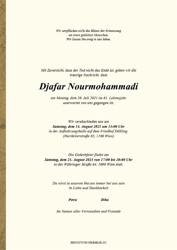 Es zerreißt einem das Herz, Menschen zu verlieren, die so lange ein liebenswerter Teil des sozialen Umfeldes waren. Ich wünschte, ich hätte ihn einfach öfters gesehen. Mein Beileid den Hinterbliebenen und der Familie.