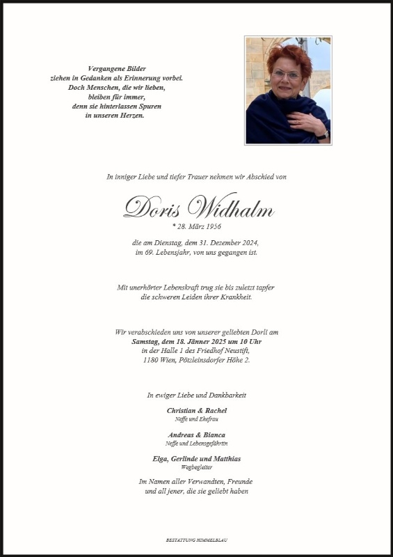 Doris war ein wundervoller Mensch! Ihr Körper ist gegangen, aber ihre Seele bleibt.