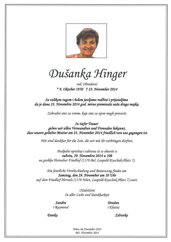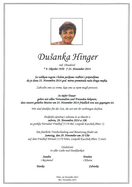 geboren am 9. Oktober 1950 in Serbien gestorben am 23. November 2014 in Wien