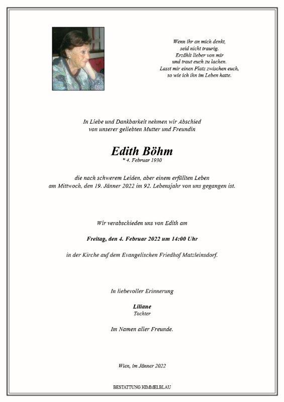 geboren am 4. Februar 1930 gestorben am 19. Januar 2022 in Wien