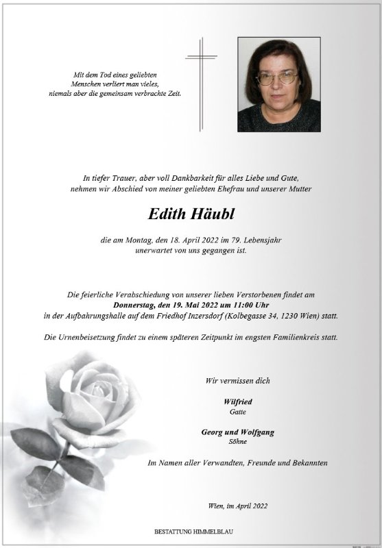 geboren am 11. Februar 1944 gestorben am 18. April 2022 in Wien