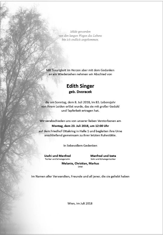 geboren am 19. Mai 1936 gestorben am 8. Juli 2018 in Wien