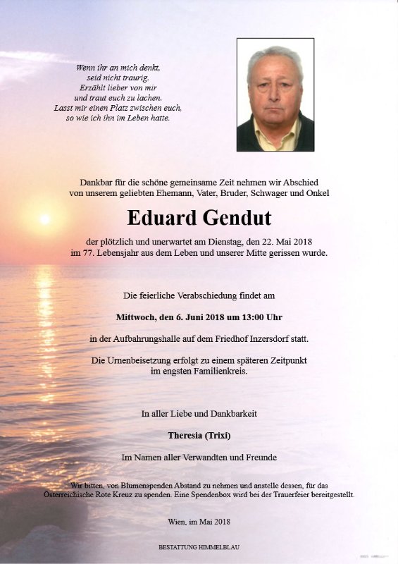 geboren am 27. November 1941 gestorben am 22. Mai 2018 in Wien