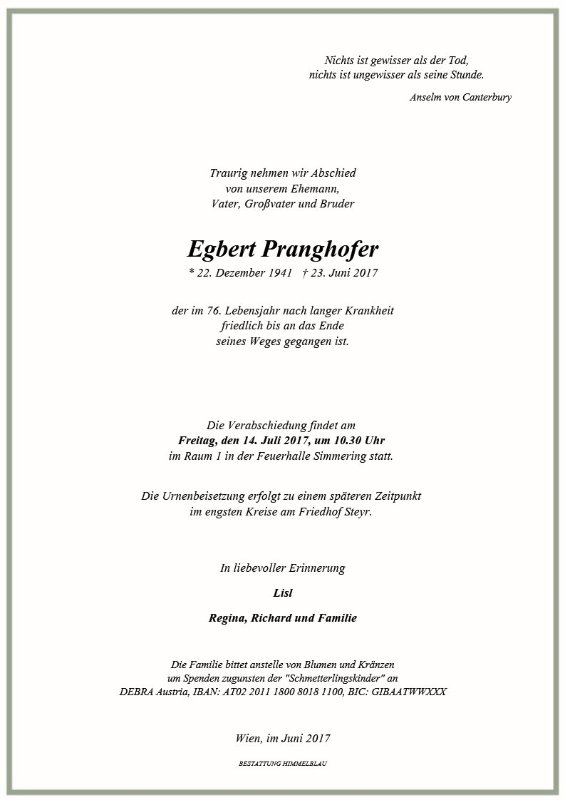 geboren am 22. Dezember 1941 in Wien gestorben am 23. Juni 2017