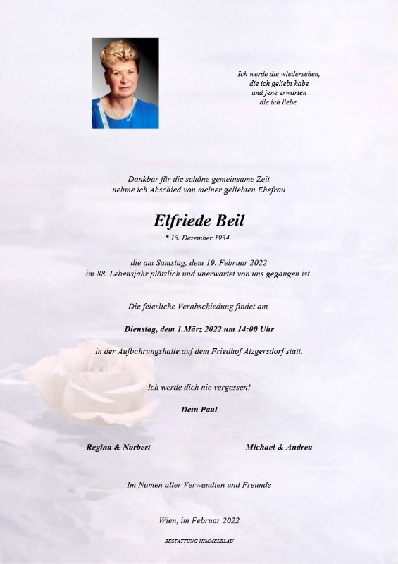 Elfi du wirst uns fehlen!Ruhe in Frieden.Letzte liebe Grüße von Gerlinde und Heri