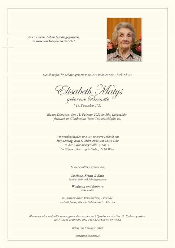 geboren am 14. Dezember 1921 gestorben am 18. Februar 2025 in Wien