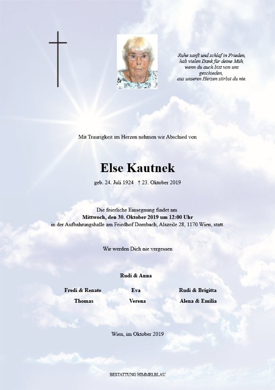 geboren am 24. Juli 1924 gestorben am 23. Oktober 2019 in Wien