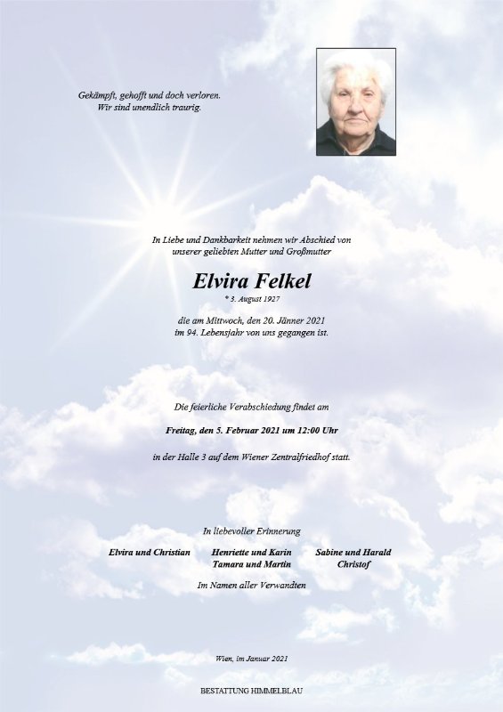 geboren am 3. August 1927 gestorben am 20. Januar 2021 in Wiener Neustadt