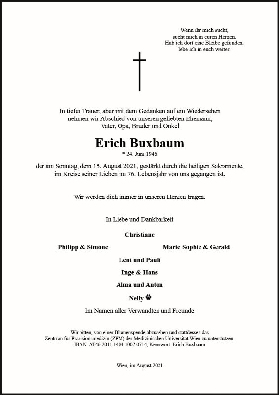 geboren am 24. Juni 1946 gestorben am 15. August 2021 in Wien