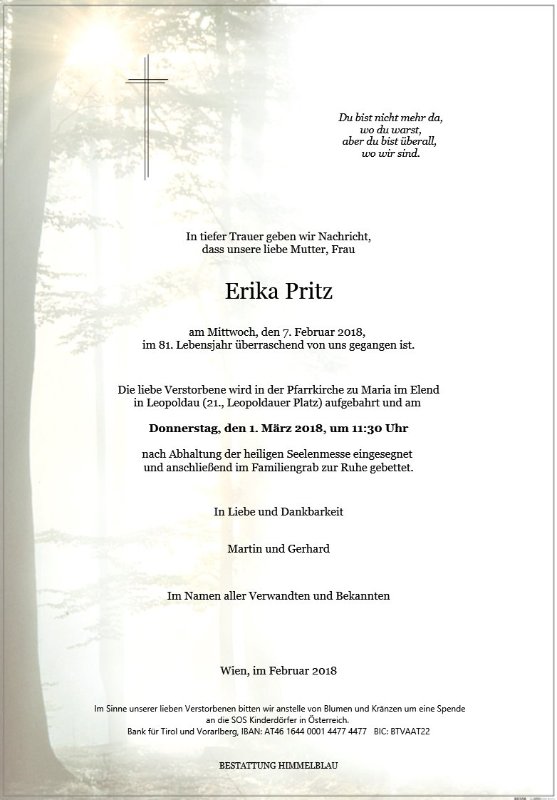 Das leben auf erden ist vergänglich, doch die Liebe und die erinnerung bleiben für immer. In Gedanken bin ich bei euch. Alles gute angelika aus tirol