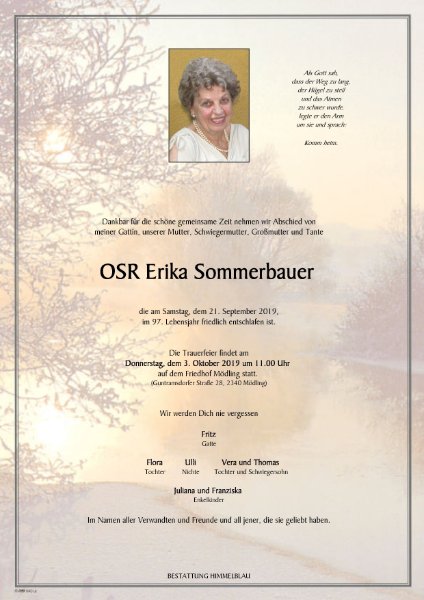 In großer Trauer habe ich die Nachricht erhalten, dass Erika nicht mehr unter uns ist.
