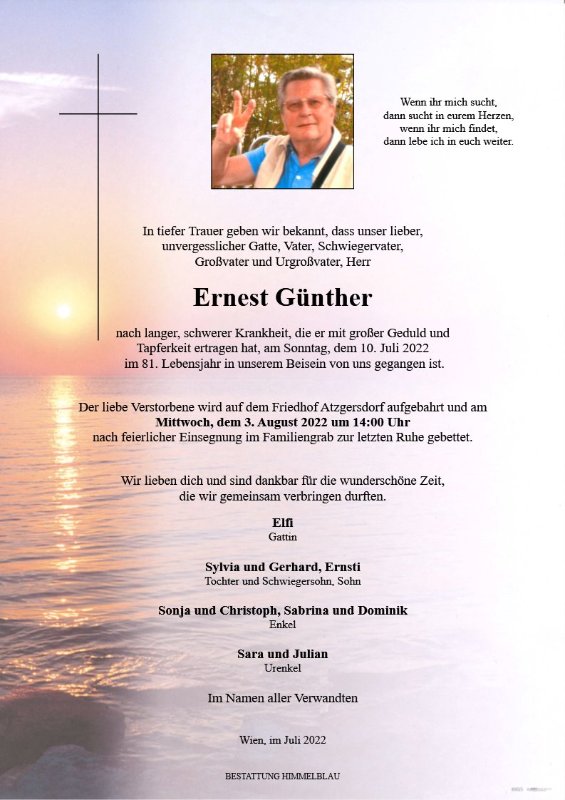 Wir werden dich sehr vermissen und sind dankbar für die gemeinsame Zeit,
