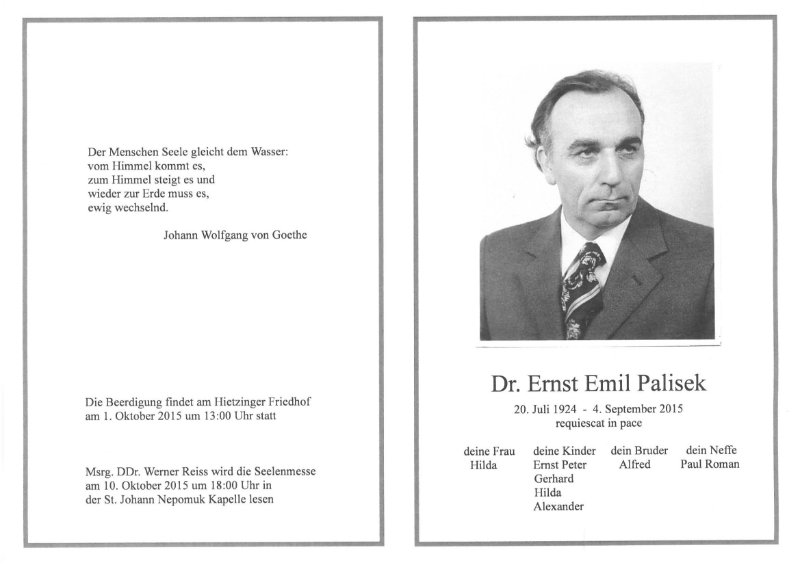 Sekt.Chef i.R. Dr.jur. Ernst Emil Josef Palisekgestorben am 4. September 2015