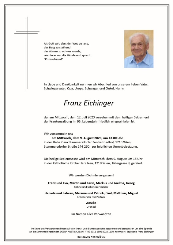 geboren am 19. August 1930 gestorben am 12. Juli 2023 in Wien