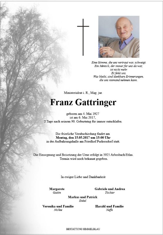 geboren am 4. Mai 1927 gestorben am 6. Mai 2017