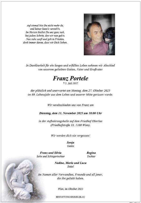 geboren am 5. Juli 1937 gestorben am 27. Oktober 2025 in Wien