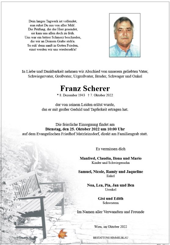 geboren am 8. Dezember 1943 gestorben am 7. Oktober 2022 in Wien