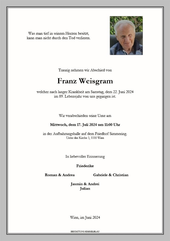 geboren am 1. Dezember 1935 in Kleinradischen gestorben am 22. Juni 2024 in Wien