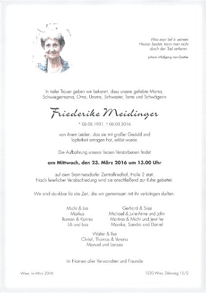 geboren am 6. Mai 1931 gestorben am 6. März 2016 in Wien