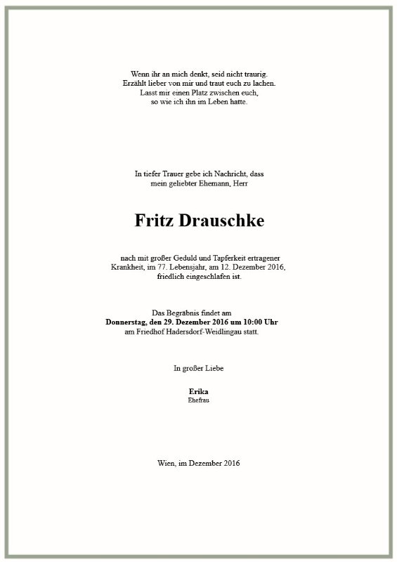 Auch wenn wir schon seit langer Zeit wissen, dass Fritz sehr schwer krank ist, sind wir von der Nachricht über seinen Tod tief betroffen.