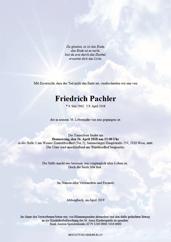 geboren am 9. Mai 1942 in Wien gestorben am 9. April 2018 in Wien