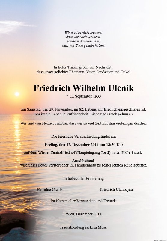 geboren am 11. September 1933 in Wien gestorben am 29. November 2014