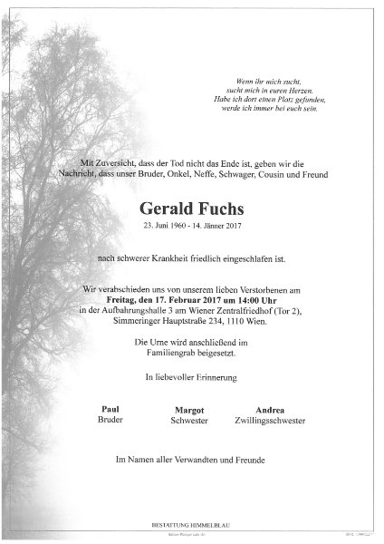 geboren am 23. Juni 1960 gestorben am 14. Januar 2017