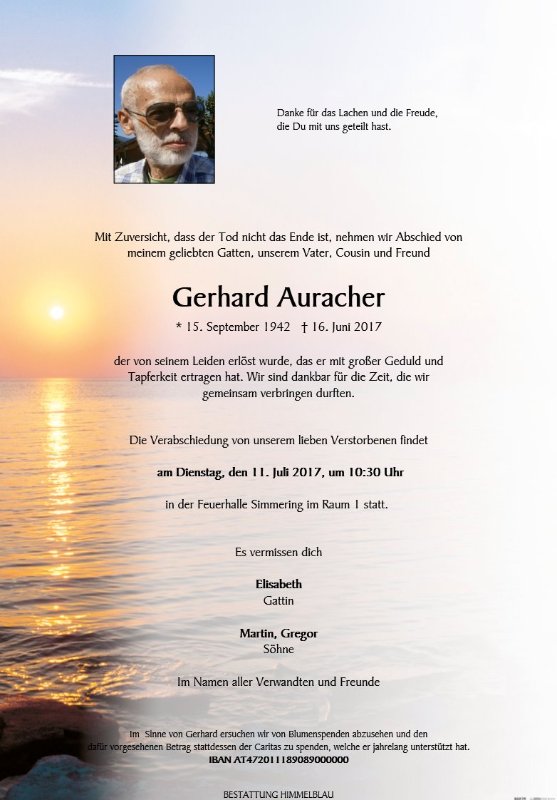 geboren am 15. September 1942 in Wien gestorben am 16. Juni 2017