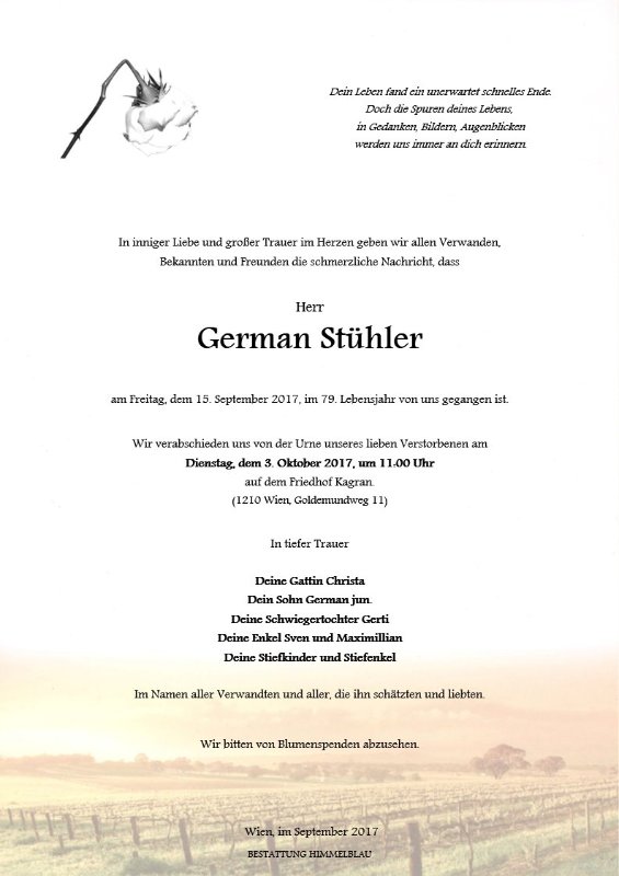 geboren am 29. Juli 1939 gestorben am 15. September 2017